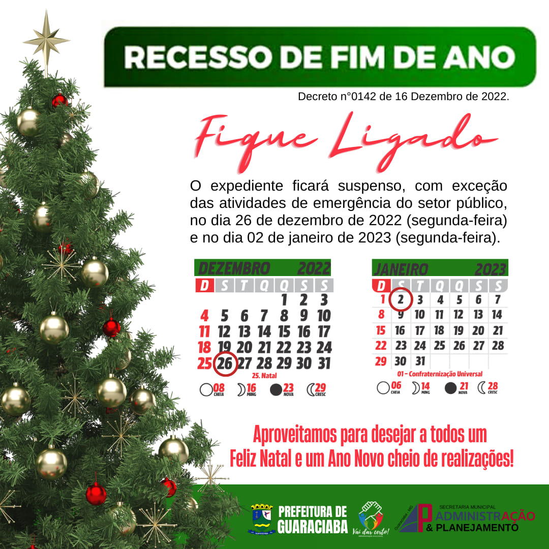 FIQUEM LIGADOS NO CALENDÁRIO DE FINAL DE ANO EM GUARACIABA.