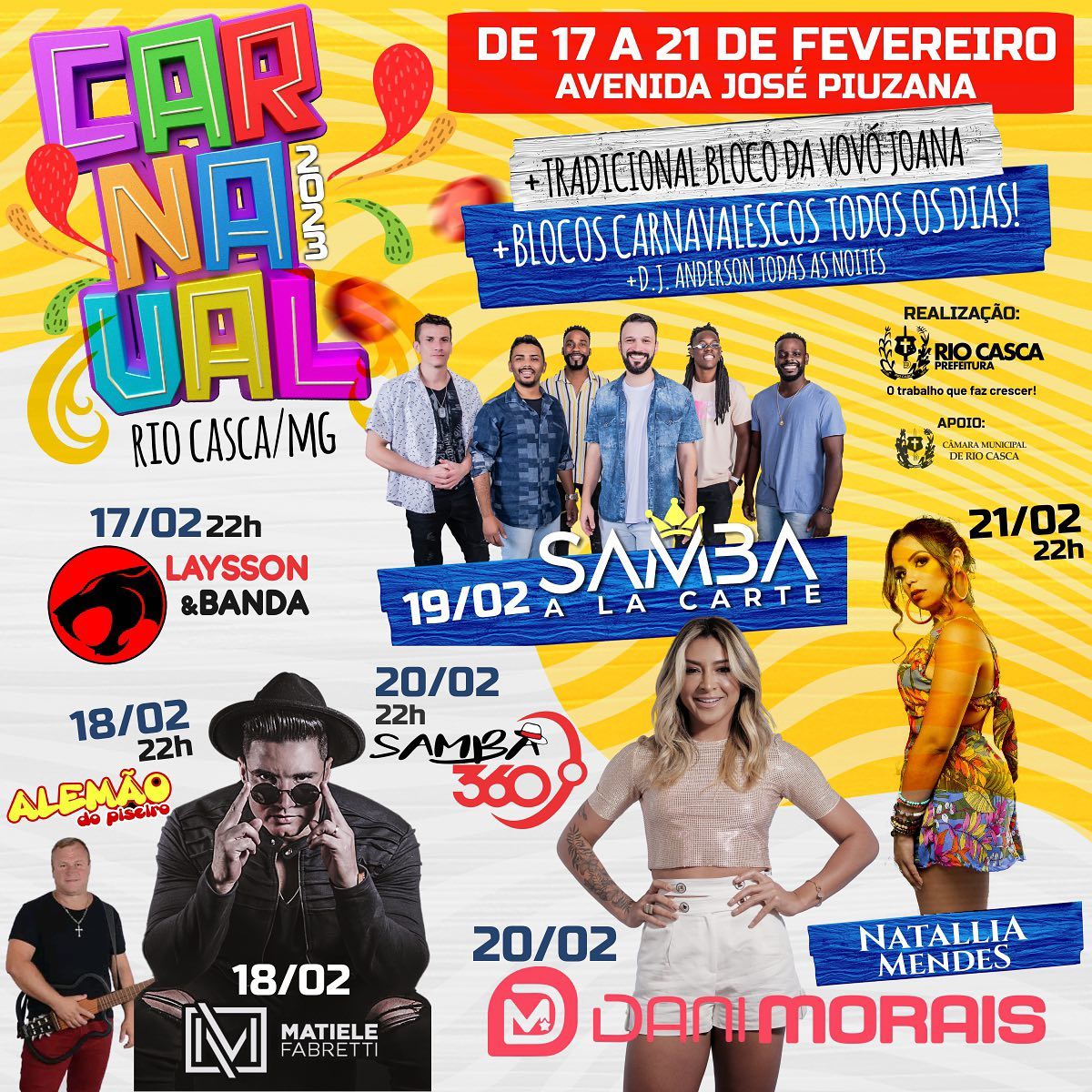 DIVULGADO A PROGRAMAÇÃO DO CARNAVAL 2023 – RIO CASCA