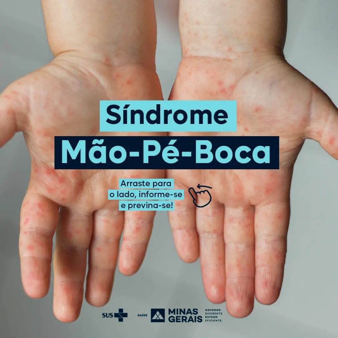 Informe-se e previna-se! Não há vacina ou tratamento específico para a síndrome *mão-pé-boca*, esse deve ser sintomático. O ideal é que o paciente permaneça em repouso, tome bastante líquido e alimente-se bem, apesar da dor de garganta. Em caso de suspeita, procure a Unidade Básica de Saúde mais próxima! #MobilizacaoSaudeMG