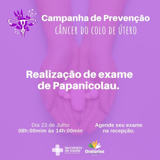 Venha realizar seu exame de Papanicolau. Agende seu exame antecipadamente na recepção da Policlinica. Traga seu cartão do SUS. #saudeoratorios #Prefeituraoratórios #examepapanicolau #preventivo