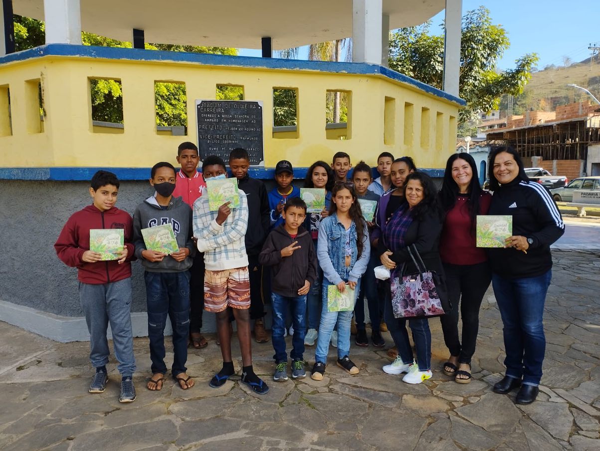 Olá, Amparo do Serra! – Mais um projeto de educação ambiental é realizado na rede municipal de ensino. Alunos, professores, supervisores e diretores das escolas municipais Antônio Firmino Bitencourt (Santana) e Olímpio Lopes Baião (Posse Velha), participaram do projeto literário “Quintal da Fifi”, livro infantil que conta a história da dona de um quintal encantado, escrito por Letícia Coelho e Lúcia Campos. – No encerramento