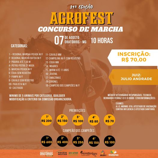 21ª Edição Concurso de Marcha AGROFEST 2022 – Oratórios