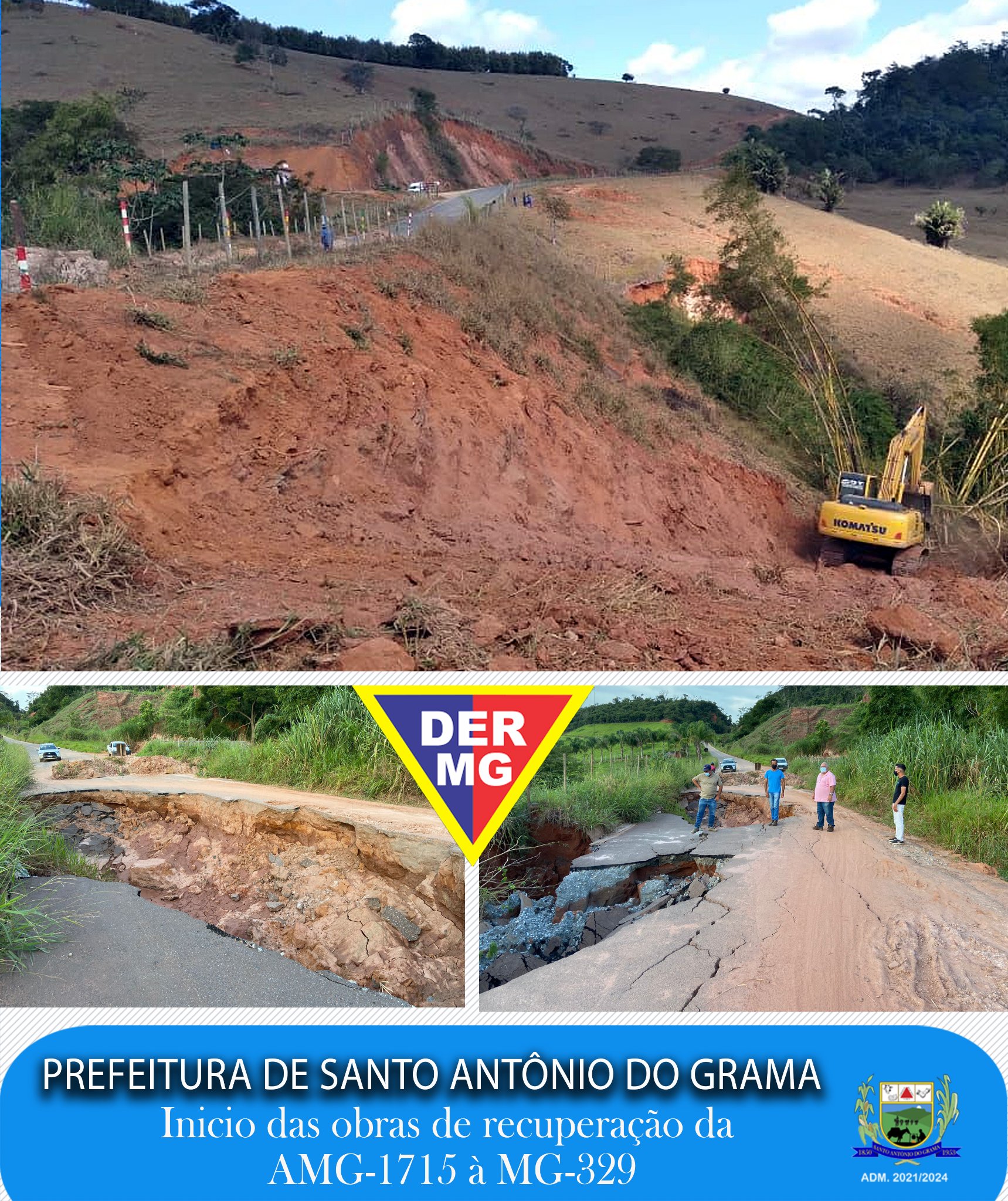 No dia 13/07 o DER-MG iniciou as obras de recuperação da AMG-1715, via que liga o município de Santo Antônio do Grama à MG-329, principal acesso à usina Jatiboca e Ponte Nova. As obras iniciaram pelo ponto mais crítico da via situado no KM 12