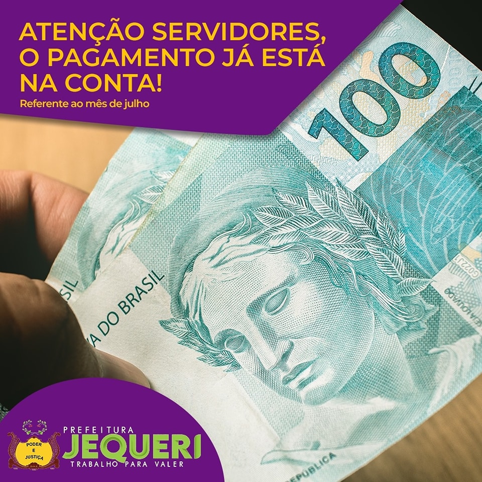 Atenção Servidores do município: a Prefeitura informa que o pagamento referente ao mês de Julho já está depositado na conta desde ontem, dia 23/07. Os inativos tem uma programação para TERÇA- FEIRA. Reforçamos nosso compromisso com o Servidor público.