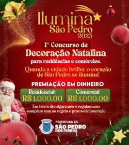 A Prefeitura de São Pedro dos Ferros, por meio da Secretaria de Cultura, lança o 1º Concurso “Ilumina São Pedro”, que vai encher nossa cidade de brilho, cor e espírito natalino! 🎄🌟