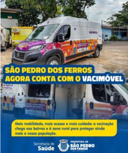 A Prefeitura de São Pedro dos Ferros, por meio da Secretaria Municipal de Saúde, tem a alegria de anunciar a chegada do Vacimóvel, um importante reforço para ampliar e facilitar o acesso da população à vacinação.